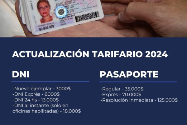 El Registro Nacional de las Personas (Renaper), organismo dependiente del Ministerio del Interior, actualizó el cuadro tarifario para la obtención…