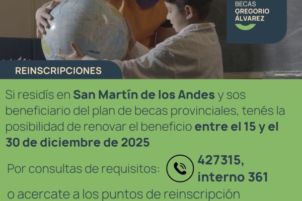 Si vivis en San Martín de los Andes y sos actualmente beneficiario del plan de becas estudiantiles provinciales Gregorio Álvarez,…