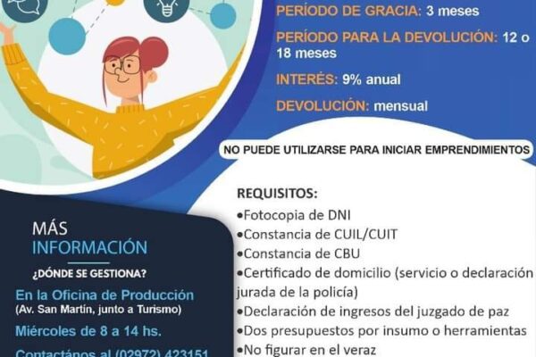 La Subsecretaría de Producción, Empleo y Economía Social informa que el Instituto Autárquico de Desarrollo Productivo (IADEP) ofrece una línea…