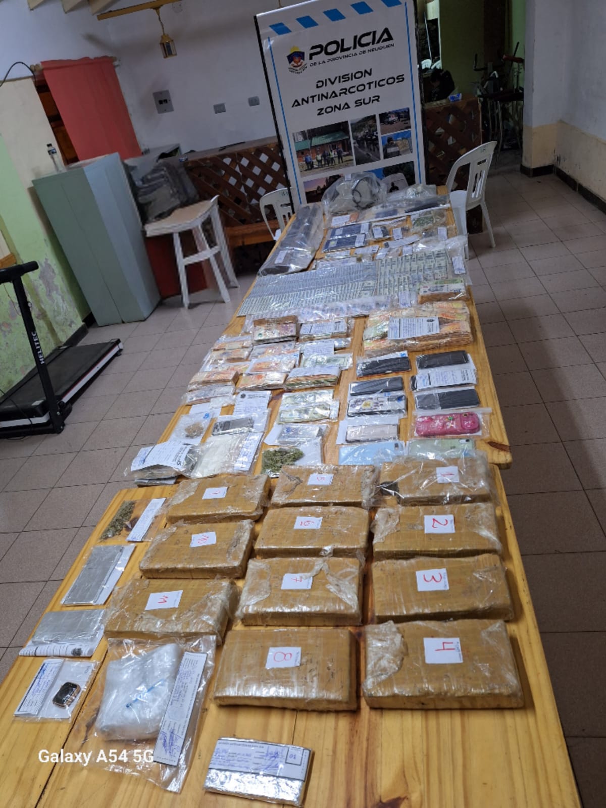 Según confirmaron las fuerzas policiales «los allanamientos se llevaron a cabo en el barrio Chacra IV y barrio Kaleuche, incautándose $4.170.320 de curso legal, dinero Moneda Extranjera Dolares USD24.345, Clorhidrato de Cocaína 594 gramos. (1.188 dosis) valor en la venta al menudeo $8.910.000, Cannabis Sativa 10.637,31 Kilogramos (10.637 dosis) valor en la venta al menudeo $53.186.550″ y agregron en cuanto a los bienes incautados » Honda Civic SI, valor en mercado $18.000.000, Toyota Hilux, valor en mercado $33.296.500, Honda Tornado Xr, valor en mercado $5.398.000, (1)Honda Cg Titan 150cc, valor en mercado $3.695.000, (2) Honda Cg Titan 150cc, valor en mercado $3.695.000, arma de fuego revolver grueso calibre, escopeta doble caño y municiones varias, telefonía celular y balanza de precisión digital» indicaron en el informe