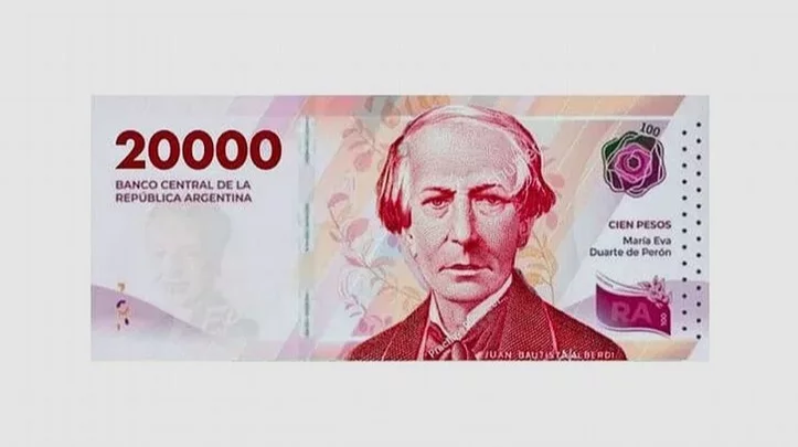 El billete de 20.000 pesos lleva la cara de Juan Bautista Alberdi, cuyo retrato estará en el anverso. Como ilustración central del reverso estará la recreación de la casa natal del abogado, diplomático, economista, escritor, filósofo, periodista y político. La emisión del nuevo billete tiene como objetivo de reemplazar los de menor denominación que complican las transacciones y desbordan las bóvedas de los bancos.