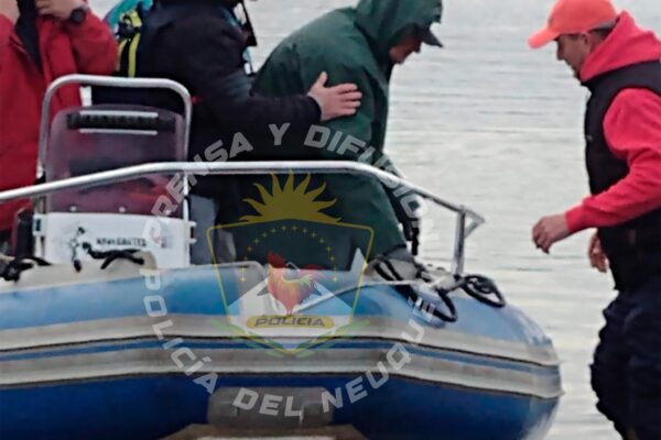 Rescatan a dos pescadores que naufragaban en el lago Collón Curá