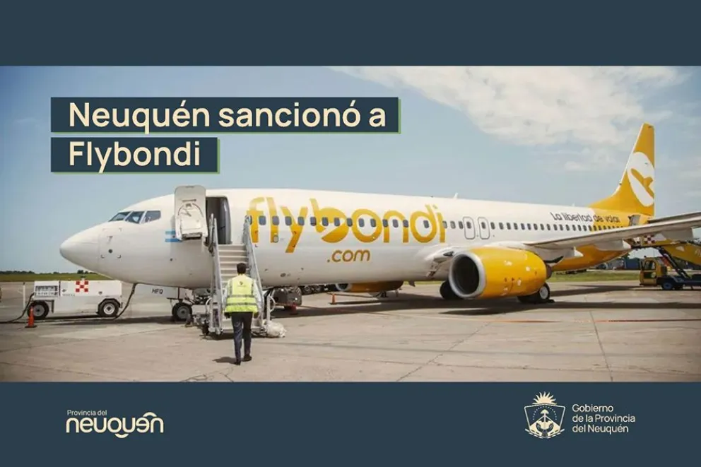 El Gobierno de la provincia a través de la Disposición 45/2025 de la dirección provincial de Protección al Consumidor, sancionó a la empresa Flybondi con una multa de $178.023.900, tras constatar graves incumplimientos al deber de información hacia los pasajeros que, el pasado 14 de mayo, se vieron afectados por reiteradas reprogramaciones de vuelos en el Aeropuerto Juan Domingo Perón, en la ciudad de Neuquén.